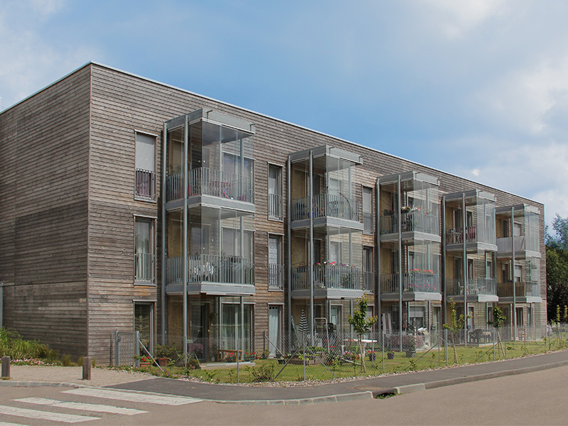 „The compositional logic of the object refers to the existing local conditions, in connection with the communal space. The special feature of this project are the southern facades with the balcony glazing, creating a bioclimatic effect that benefits from passive solar energy. These glazings are very important for the architectural handwriting, but above all, they provide a real added value for the residents, „says architect Laurent Protois about his project.