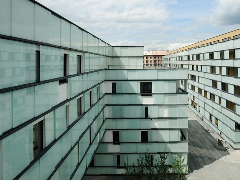 In contemporary architecture, the design of glass façades plays a „supporting“ role. In order to master it with large-scale facades, the use of highly functional glass products is required. Using natural light is one of the most essential components of architecture. Facades have long become much more than just a static shell, namely an interface between inside and outside, which now also has to meet the increased requirements for energy efficiency.