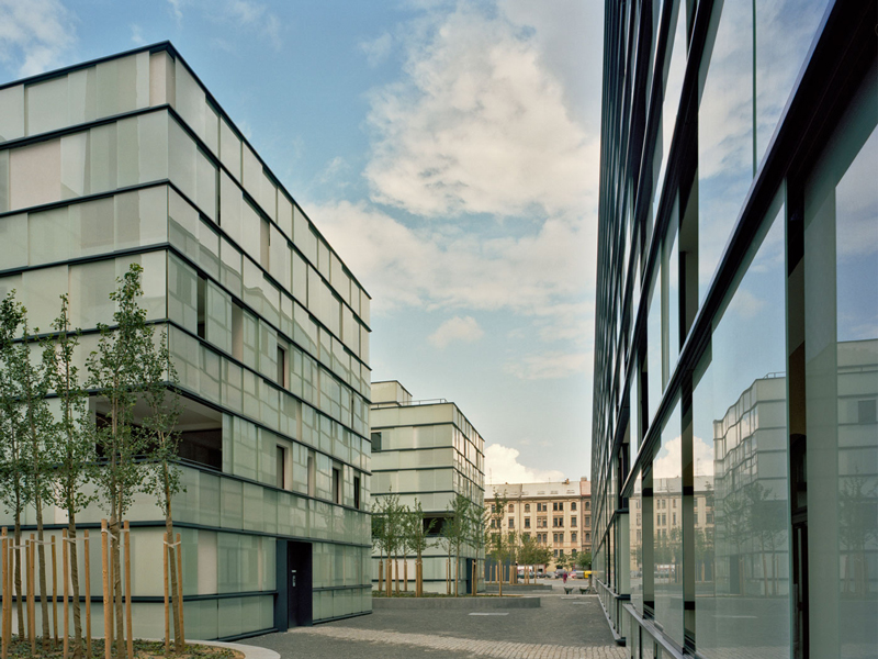 The building envelope of the old oil mill in Prague is the material and conceptual basis for measures aimed at gaining multi-storey apartments. The architecture firm Baumschlager-Eberle was able to reflect Corbusier’s complex spatial organization for the Unitées d’habitation in the old building. „Programmatic Realism“ was what Viennese architecture journalist Dietmar Steiner once called this, and it works in Prague. Especially with regard to the connection between the new object and the existing building, which encloses the spatial context with its courtyard-side glass façade.