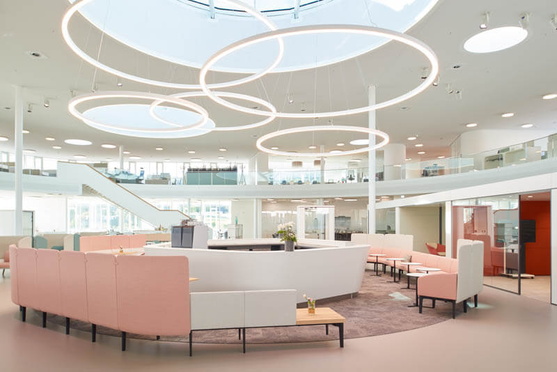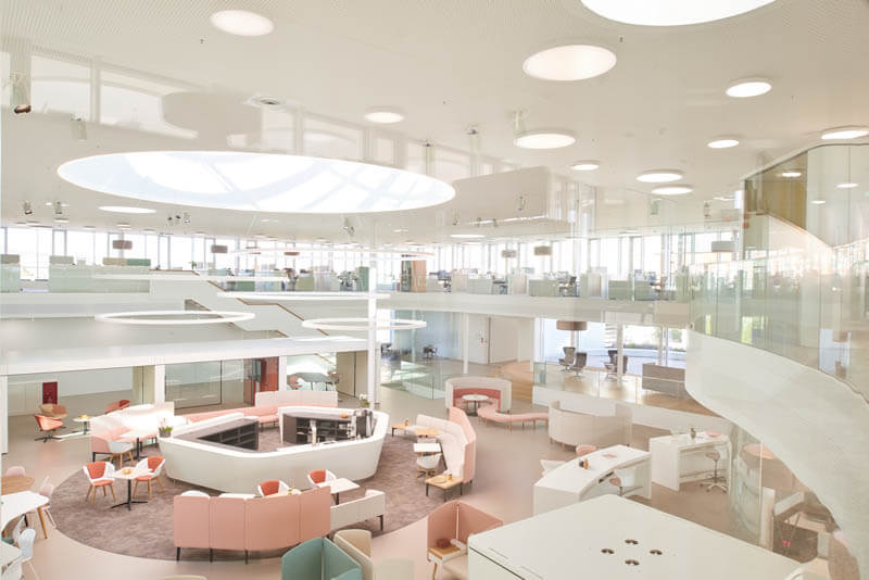 Das von Moser Architekten Lörrach entworfene Sedus Smart Office dient zugleich als Arbeitsplatz für die eigenen Mitarbeiter und gleichzeitig als Prototyp und Vorzeigeobjekt für die internationalen Kunden. Seit der Renovierung arbeiten viele verschiedene Abteilungen – inklusive der Vorstandsebene – in einem einzigen großzügigen Raum. Auf unterschiedlichen Ebenen sind Orte für die wesentlichen Arbeitsprozesse Kommunikation, Kooperation, Konzentration und Entspannung eingerichtet. Allesamt sind diese durch Glas Marte Glasgeländer gesichert und beinahe unsichtbar voneinander abgegrenzt. Ein durchdachtes Farbkonzept integriert die unterschiedlichen, individuell angeordneten und ausgestatteten, Bereiche zu einem harmonischen Ganzen. Das Smart Office bietet eine gekonnte Mischung aus Offenheit und Geborgenheit, festen und flexiblen Arbeitsplätzen inmitten einer attraktiven Bürolandschaft. Abgerundet wird das Ganze durch ein ausgeklügeltes Lichtkonzept, das so viel Tageslicht wie möglich nutzt und im Bedarfsfall künstliches Licht einsetzt – Lichtintensität und Farbtemperatur angepasst an Tages- und Jahreszeit. Eindrucksvoll zeigt Sedus damit, wie Büros heute gestaltet werden und interdisziplinäre Teamarbeit funktionieren kann.