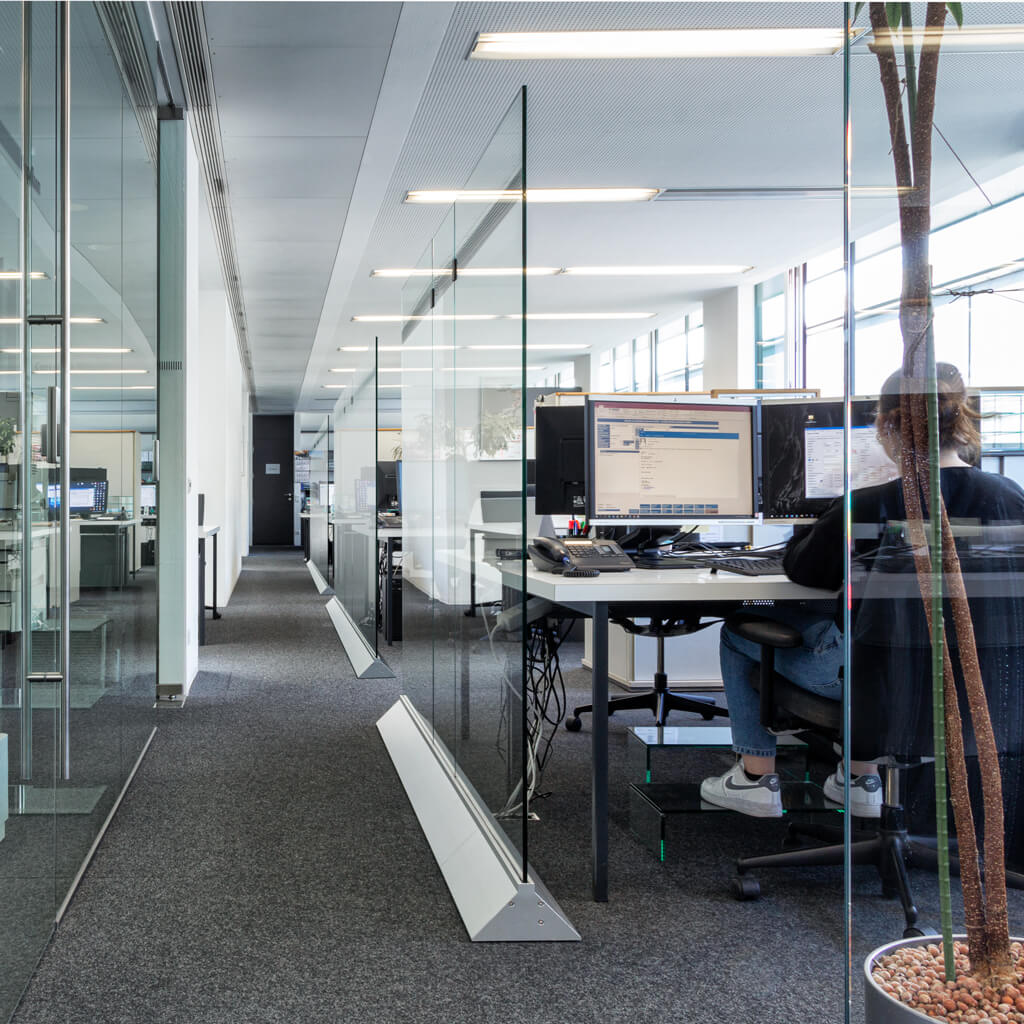 Eine Trennwand aus Glas gibt jedem Raum Struktur, ohne ihn zu beschweren. Die Leichtigkeit von Ganzglas-Komplettlösungen eröffnet dem gesamten Raumkonzept völlige Gestaltungsfreiheit. Technisch auf höchstem Niveau, wandelbar durch vielfältige Möglichkeiten der Oberflächengestaltung und denkbar einfach in Montage und Pflege, ist eine Trennwand von Glas Marte der Inbegriff moderner Innenarchitektur.