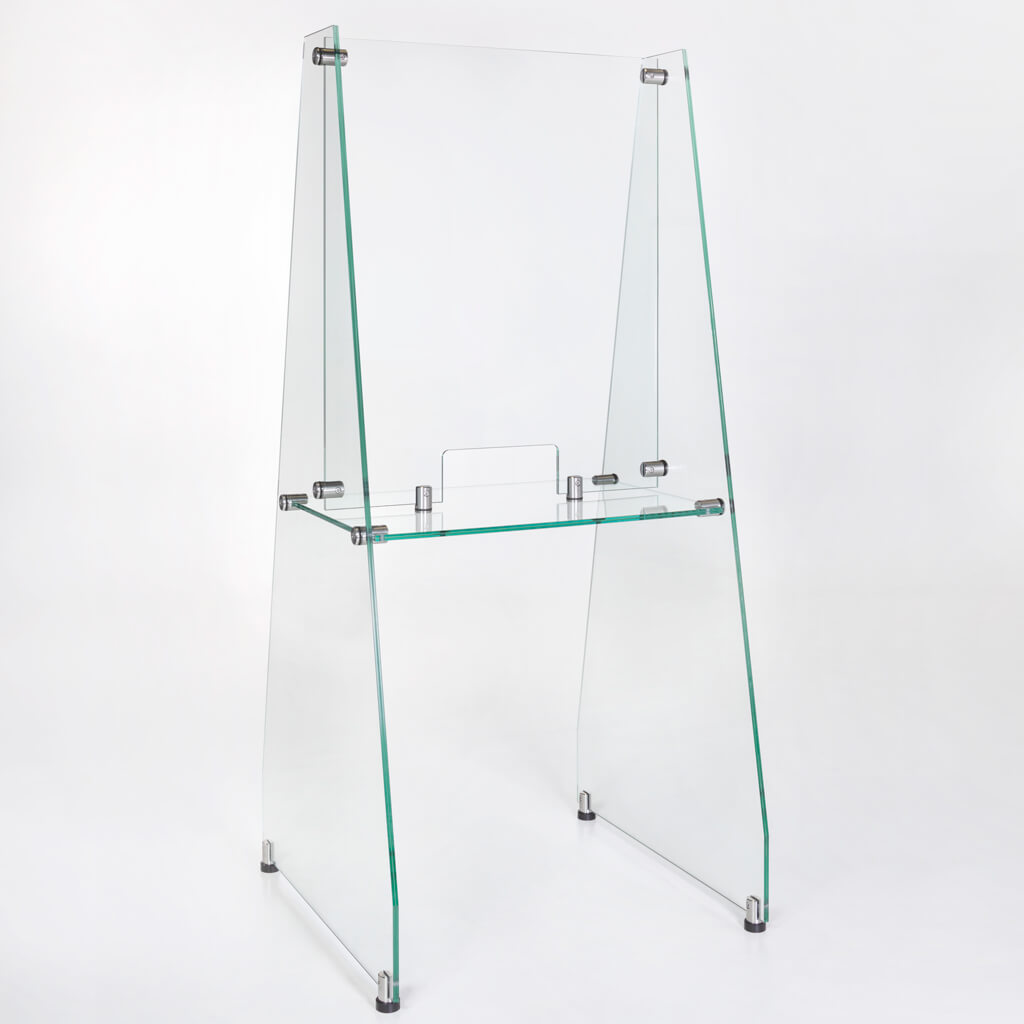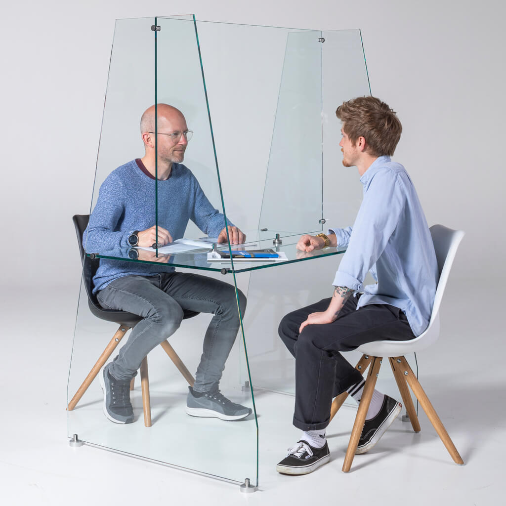 Schutzschild und Möbel aus Glas: Schutz vor Tröpfcheninfektion.