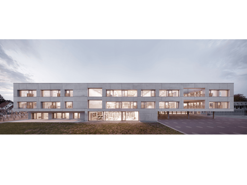 Sowohl Pädagogen als auch die Stadt Bregenz stellten hohe Anforderungen an die Planer: Situiert in einem sozial problematischen Einzugsgebiet, war eine monotone Siedlungsstruktur und homogene Nutzung vorherrschend. Dies verlangte nach einer Akzentuierung und Programmierung – mit der Schule sollte das Quartier aufgewertet werden. Nicht nur architektonisch. Auch das moderne, innovative Schulkonzept sollte Impulse setzen. Das ambitionierte Vorhaben ist geglückt: Heute bildet das Gebäude als öffentliches Quartierszentrum einen neuen Schwerpunkt im Stadtteil Bregenz-Schendlingen.