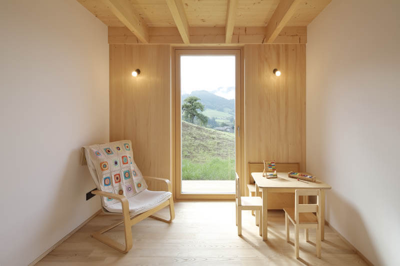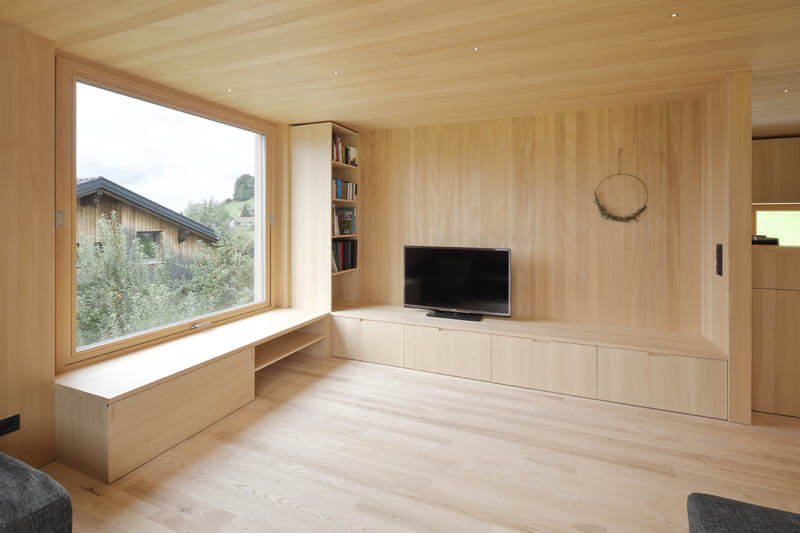Beim Vorarlberger Holzbaupreis überzeugte das Einfamilienhaus aus Lingenau aufgrund der durchdachten Planung (HK Architekten) und Ausführung: Entstanden ist ein kompaktes Haus aus einem Guss – innen, unten und oben mit Holz.